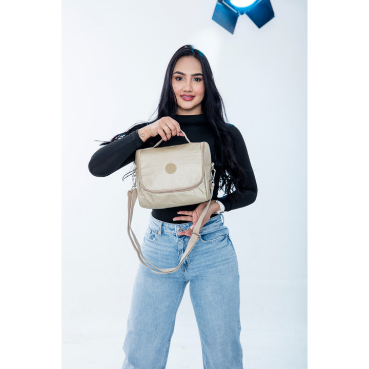 Lonchera con pared térmica y correa para manos libres, dimensiones 23*20cm, material poliéster.