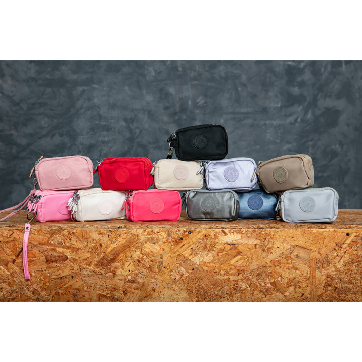 Monedero de 3 cierres, con dimensiones de 11.5 *7.5 cm, material poliéster.