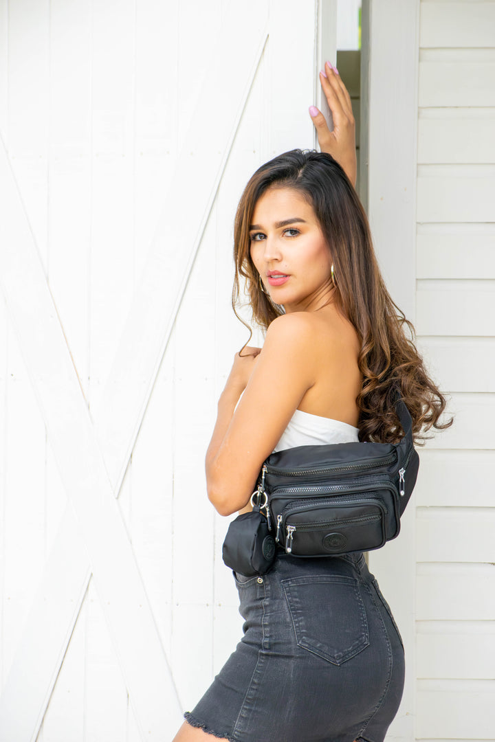 Riñonera mediana con dimensiones de 24*13 cm, con cierres múltiples, idea para el gym y salidas casuales.